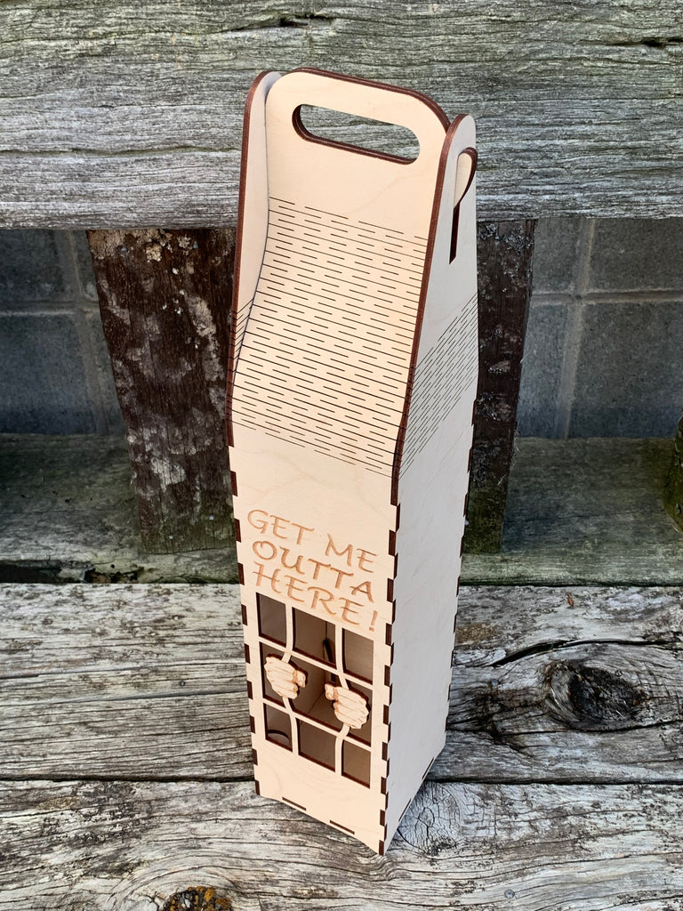 One of our best sellers, The jailed wine box is a fun way to give that special someone a lovely bottle of wine or maybe even spirits. The unique design uses flexible living hinges for a stylish touch.