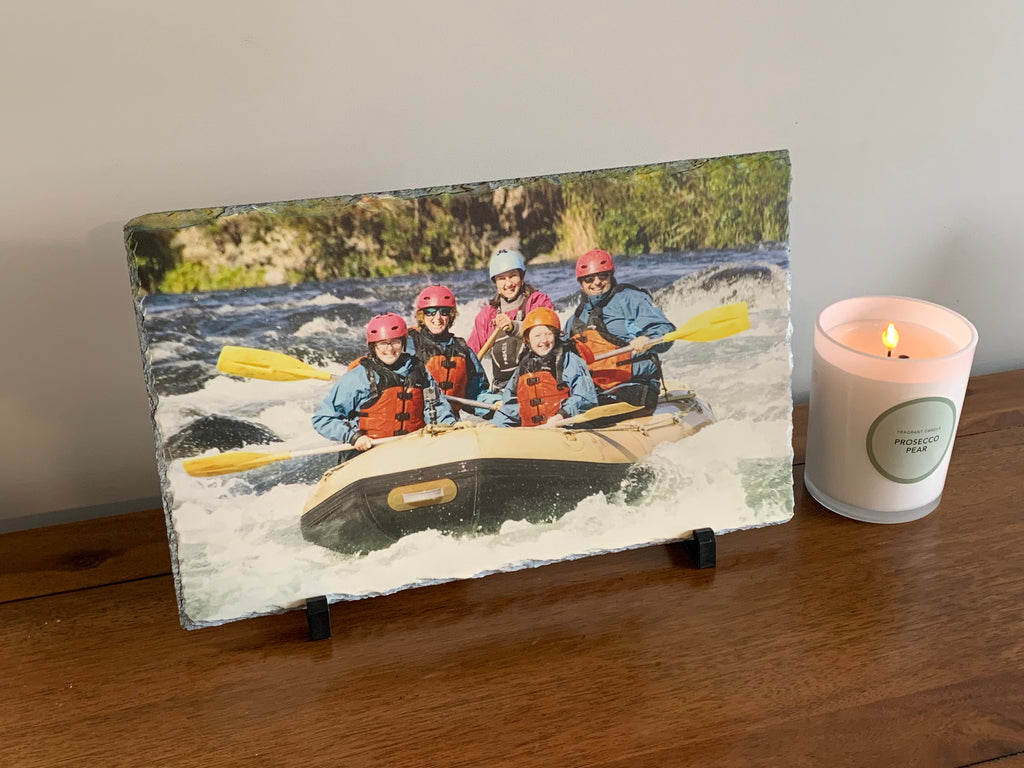 Our natural picture slates are a great way to showcase your most precious memories. You can stand them on a shelf, desk or bedside table. The slate has a unique edge finish giving your special image a little extra character. Each slate comes with a set of stands to hold perfectly in position.